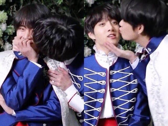 授賞式のスピーチの際にグクの肩にジミンが顎を載せていたり笑ったりしているのを見て、テテは嫉妬し、その場から離れています。