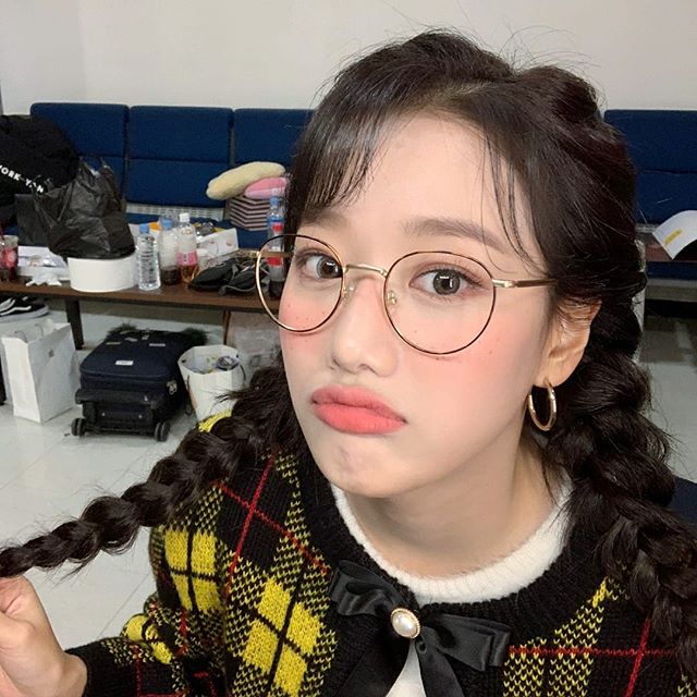 メガネのフレームのブラックがファッションの差し色となっているのでしょうか、普段の元気なダヒョンのイメージとはまた違い、落ち着いて見えるのもまた魅力的!