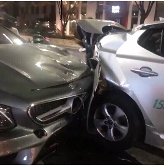 テヨンの車がタクシーに追突し、その影響でタクシーが更に前のアウディに追突しました。