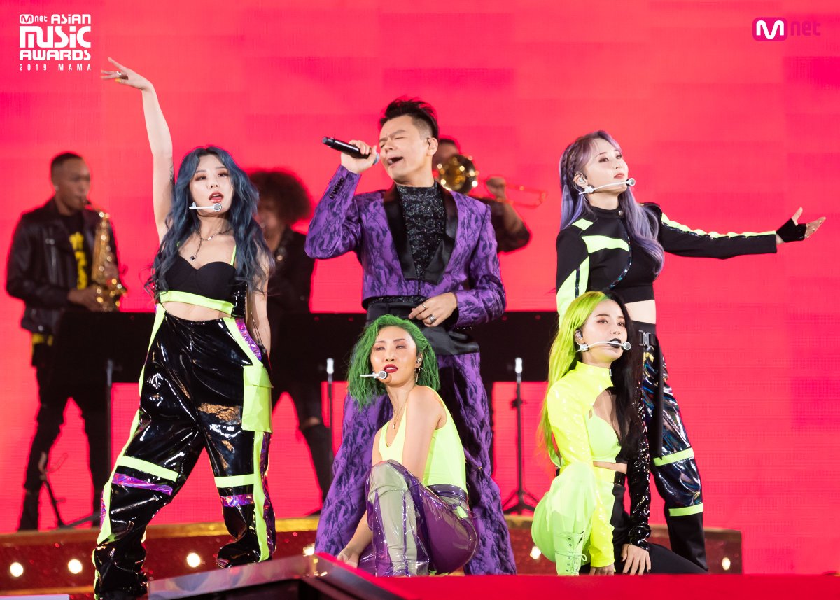 そんなステージでMAMAMOOの4人はJYPエンターテインメントの代表J.Y.Parkとコラボレーションしました。